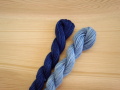 淡い色あいの浅葱色と濃い色あいの縹色の藍染め糸のセットとなります。