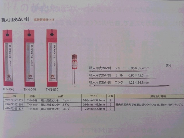 針ものがたり 職人用皮ぬい針【高級研磨仕上げ】【2本入り】【チューリップ社製】